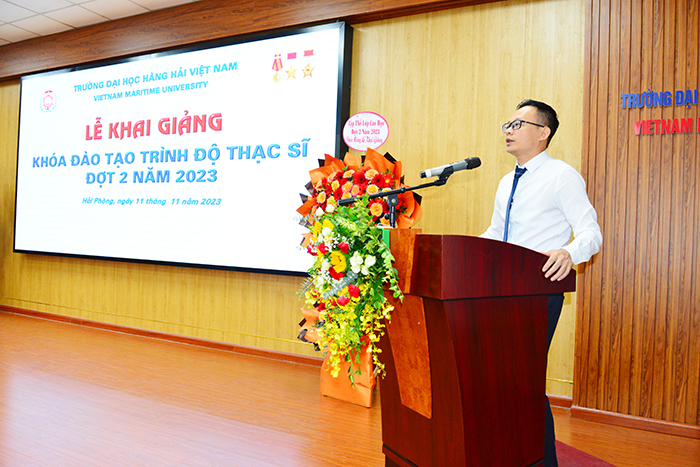 Phát biểu tại Lễ Khai giảng, PGS.TS Phạm Xuân Dương - Hiệu trưởng Nhà trường gửi lời chúc mừng đến 147 các bạn học viên cao học đã trúng tuyển. Thầy cũng chúc mừng các bạn vì đã sáng suốt lựa chọn Trường Đại học Hàng hải Việt Nam là điểm bắt đầu để khám phá một chân trời tri thức mới, vươn tới những học vị cao hơn.