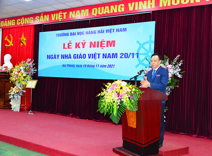Lễ kỷ niệm 39 năm ngày Nhà giáo Việt Nam năm nay được tổ chức trong không khí toàn Trường đang quyết tâm triển khai nhiệm vụ năm học, năm thứ hai triển khai Nghị quyết Đại hội Đảng bộ trường Khoá 27, tiếp tục thực hiện chiến lược phát triển Nhà trường trở thành đại học trọng điểm quốc gia, đạt đẳng cấp quốc tế  với giá trị cốt lõi: "Trí tuệ - Sáng tạo - Trách nhiệm - Nhân văn”, khẳng định vị trí quan trọng của Nhà trường trong việc triển khai Nghị quyết 36/NQ-Khoá 12 về “Phát triển bền vững kinh tế biển Việt Nam đến năm 2030 tầm nhìn 2045”, và Nghị quyết 45/NQ-TW của Bộ Chính trị về “Phát triển thành phố Hải Phòng đến năm 2030 tầm nhìn 2045”.
