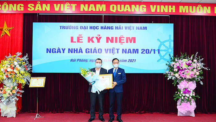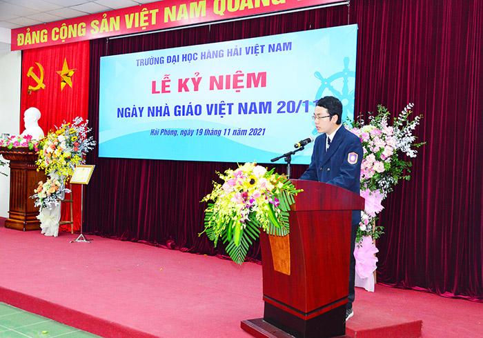 08h00 ngày 19/11/2021, Trường Đại học Hàng hải Việt Nam tổ chức Lễ mít tinh kỷ niệm 39 năm Ngày Nhà giáo Việt Nam (20/11/1982 – 20/11/2021). Dự lễ mít tinh có PGS.TS Nguyễn Khắc Khiêm – Bí thư Đảng ủy, Chủ tịch Hội đồng Trường; PGS.TS Phạm Xuân Dương – Phó Bí thư Đảng ủy, Hiệu trưởng Nhà trường – chủ trì Lễ kỷ niệm cùng các đồng chí trong Ban Giám hiệu, Công đoàn, Đoàn Thanh niên - Hội sinh viên, Thủ trưởng các đơn vị trong toàn Trường.