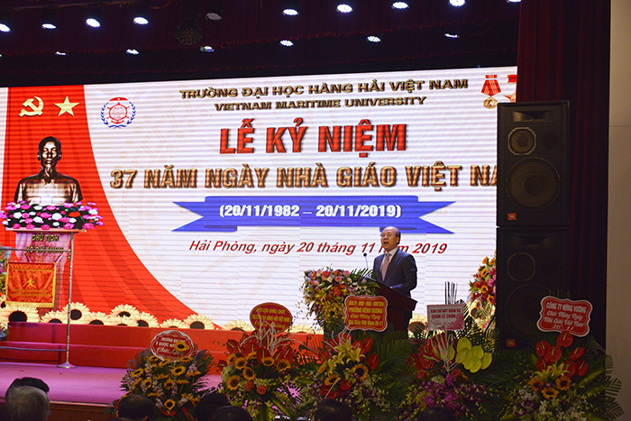 Phát biểu tại buổi lễ Thứ trưởng Bộ GTVT Nguyễn Văn Công biểu dương những thành tích mà Trường Đại học Hàng hải Việt Nam đã đạt được. “Năm 2019 là năm triển khai thực hiện các Nghị quyết quan trọng của Đảng liên quan trực tiếp đến vấn đề đào tạo nguồn nhân lực phát triển kinh tế biển. Nghị quyết số 36-NQ/TW về Chiến lược phát triển bền vững kinh tế biển Việt Nam đến năm 2030, tầm nhìn đến năm 2045 đã được thông qua tại Hội nghị lần thứ 8 của Ban chấp hành Trung ương Đảng khóa XII, theo đó, đến năm 2030 Việt Nam trở thành quốc gia biển mạnh, đạt cơ bản các tiêu chí về phát triển bền vững kinh tế biển, trong đó tập trung phát triển khoa học, công nghệ và đào tạo nguồn nhân lực biển chất lượng cao, thúc đẩy đổi mới, sáng tạo, tận dụng thành tựu khoa học, công nghệ tiên tiến, khoa học, công nghệ mới, thu hút chuyên gia, nhà khoa học hàng đầu, nhân lực chất lượng cao.”