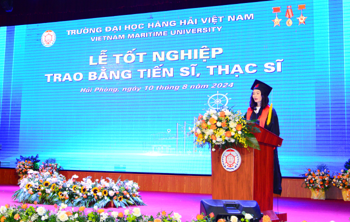 Đại diện cho các tân tiến sĩ, tân thạc sĩ phát biểu, bày tỏ niềm vui, niềm tự hào khi được học tập và nghiên cứu dưới Mái trường Đại dương, hứa sẽ đem hết tâm lực, trí lực và kiến thức đã được đúc kết qua quá trình học tập, nghiên cứu từ Trường, vận dụng một cách linh hoạt và sáng tạo vào thực tiễn. Đây cũng là cách để tri ân với Nhà trường và các thầy, cô giáo.