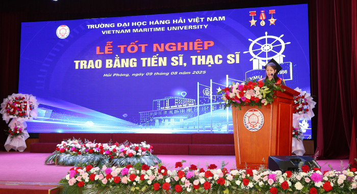 Đại diện cho các tân tiến sĩ, tân thạc sĩ đã phát biểu, bày tỏ niềm vui, niềm tự hào khi được học tập và nghiên cứu dưới Trường Đại học Hàng hải Việt Nam, hứa sẽ đem hết tâm lực, trí lực và kiến thức đã được đúc kết qua quá trình học tập, nghiên cứu từ Nhà trường, vận dụng một cách linh hoạt và sáng tạo vào thực tiễn. Đây cũng là cách để tri ân với Nhà trường và các thầy, cô giáo.