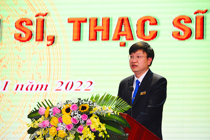 Thầy Hiệu trưởng nhấn mạnh: Lễ trao bằng tiến sĩ, thạc sĩ không chỉ là niềm vinh dự, tự hào của bản thân, gia đình và bạn bè mà còn góp phần vào sự phát triển chung của Nhà trường. Thầy cũng bày tỏ sự tin tưởng sau khi hoàn thành nhiệm vụ học tập tại Trường, các tân tiến sĩ, tân thạc sĩ sẽ không ngừng phấn đấu, rèn luyện hoàn thành tốt nhiệm vụ, góp phần tích cực xây dựng và phát triển đất nước.