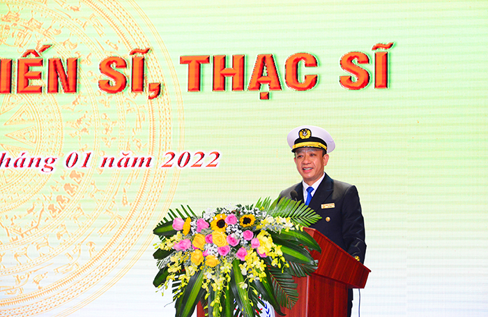 Phát biểu tại buổi lễ, PGS.TS. Phạm Xuân Dương - Hiệu trưởng Nhà trường chúc mừng và biểu dương thành tích học tập của các học viên. Trong những năm qua, đánh dấu bước phát triển mạnh mẽ của Trường Đại học Hàng hải Việt Nam trong đào tạo theo chuẩn quốc tế nhằm đáp ứng nguồn nhân lực phục vụ cho “Chiến lược phát triển bền vững kinh tế biển Việt Nam đến 2030 tầm nhìn 2045” và chủ động hội nhập toàn cầu. Nhà trường đã chủ động ban hành các chiến lược phát triển quan trọng đến 2025 và tầm nhìn đến 2030, bao gồm: Chiến lược phát triển giáo dục và đào tạo, Chiến lược phát triển Khoa học công nghệ, Chiến lược phát triển Hợp tác quốc tế,…