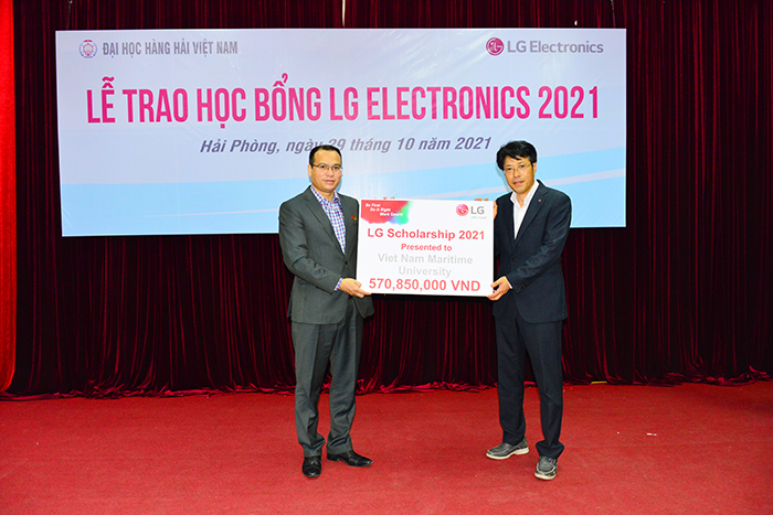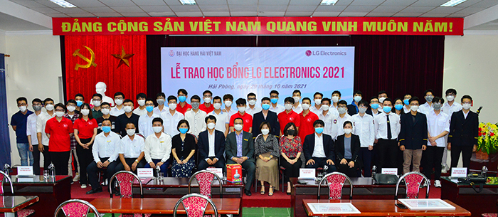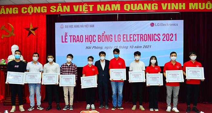Sáng ngày 29/10/2021, tại Trường Đại học Hàng hải Việt Nam, Công ty LG Electronics Việt Nam Hải Phòng (LGEVH) đã tổ chức trao học bổng cho 49 sinh viên xuất sắc theo chương trình “LG Scholarship”. Đây là năm thứ 3 liên tiếp Công ty cấp học bổng cho sinh viên của Trường, thể hiện sự quan tâm rất lớn của Công ty đến sự nghiệp đào tạo nguồn nhân lực của Nhà trường.