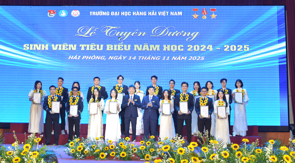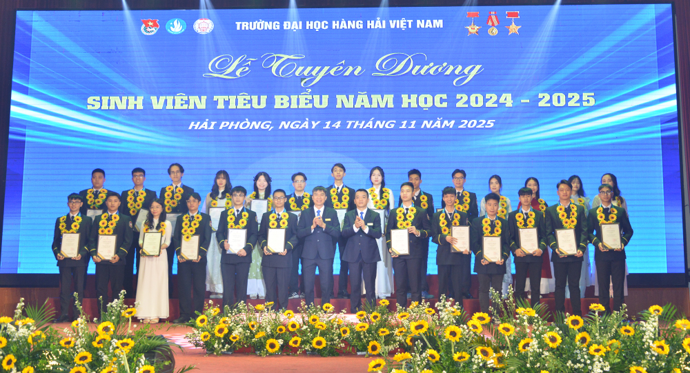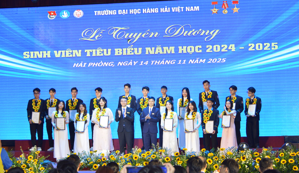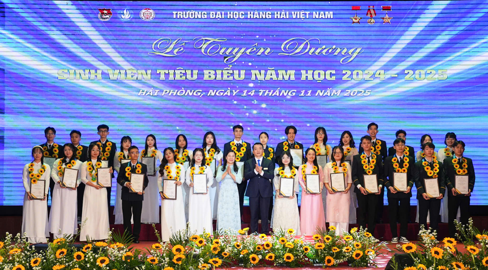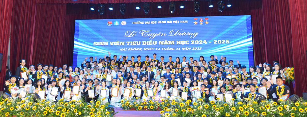 Tối 14/11/2025, tại Hội trường A8, Trường Đại học Hàng hải Việt Nam đã tổ chức: “Lễ tuyên dương sinh viên tiêu biểu năm học 2024-2025” nhằm biểu dương, khen thưởng 214 gương mặt sinh viên tiêu biểu, đạt các thành tích xuất sắc trong các lĩnh vực học tập, nghiên cứu khoa học, thi Olympic, văn hóa văn nghệ, thể dục thể thao, công tác Đoàn - Hội, góp phần tạo động lực để sinh viên Nhà trường tiếp tục nỗ lực phấn đấu đạt thành tích cao hơn nữa trong những năm học tới đồng thời góp phần tô thắm thêm bảng vàng thành tích của Nhà trường.