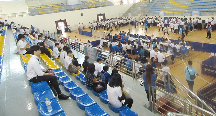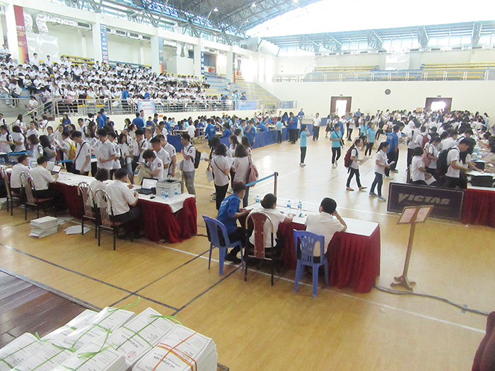 Để tạo điều kiện thuận lợi nhất cho tân sinh viên và gia đình, Nhà trường bố trí khu Nhà đa năng rộng hơn 2.000m2, với sức chứa 3.500 người đồng thời chuẩn bị chu đáo từ khâu lên kế hoạch, phổ biến quy trình nhập học trên các phương tiện thông tin, các bảng hướng dẫn, sơ đồ, công khai các khoản thu… từ trước đó nhiều ngày. Ban đón tiếp cùng sự hỗ trợ từ các khoa, viện, trung tâm, các sinh viên tình nguyện đã giúp tân sinh viên K60 nhanh chóng hoàn thành các thủ tục cần thiết và nhập học theo đúng quy trình.