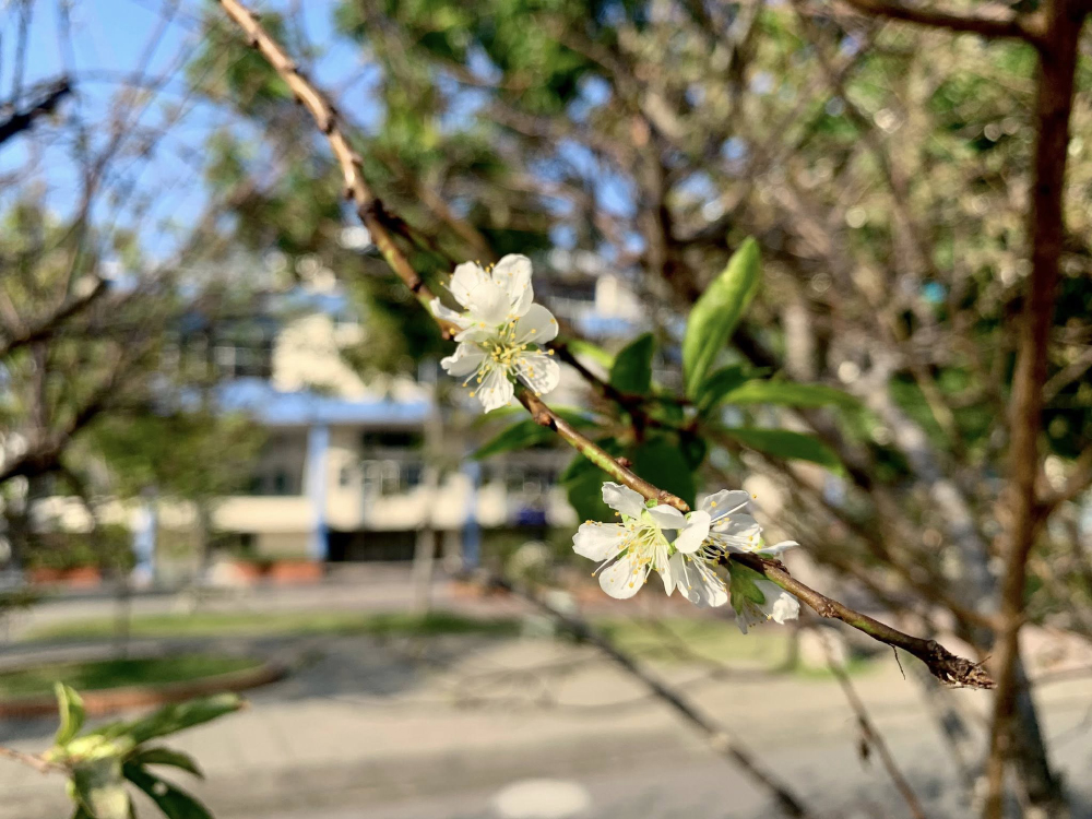 Cây Lộc vừng mới được trồng bổ sung trong khuôn viên Trường đã bắt đầu nảy lộc, đâm chồi trong nắng Xuân
