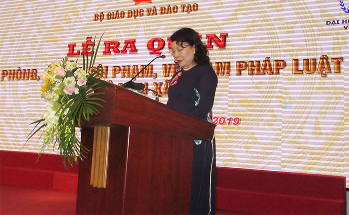 Phát biểu tại buổi lễ, Thứ trưởng Bộ GD&ĐT Nguyễn Thị Nghĩa nhấn mạnh: “Năm học 2019-2020 là năm học bản lề trong việc đẩy mạnh và nâng cao hiệu quả công tác phòng, chống tội phạm, vi phạm pháp luật và tệ nạn xã hội trong học sinh, sinh viên giai đoạn 2016-2020, chuẩn bị để xây dựng và thực hiện giai đoạn mới 2021-2025. Đây là thời điểm có vị trí, vai trò đặc biệt quan trọng trong việc đánh giá, xác định phương hướng, nhiệm vụ trong giai đoạn tiếp theo về công tác phòng chống tội phạm, tệ nạn xã hội, vi phạm pháp luật nói chung và trong ngành giáo dục nói riêng nhằm góp phần xây dựng và bảo đảm môi trường giáo dục an toàn, lành mạnh, thân thiện cho thế hệ trẻ.”