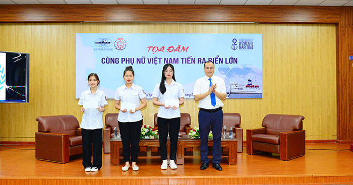 Nhằm động viên, khuyến khích các bạn sinh viên nữ tham gia học tập các ngành đi biển, Nhà trường đã lựa chọn 3 sinh viên nữ xuất sắc nhất để trao học bổng trị giá 5 triệu đồng từ nguồn tài trợ của các doanh nghiệp.