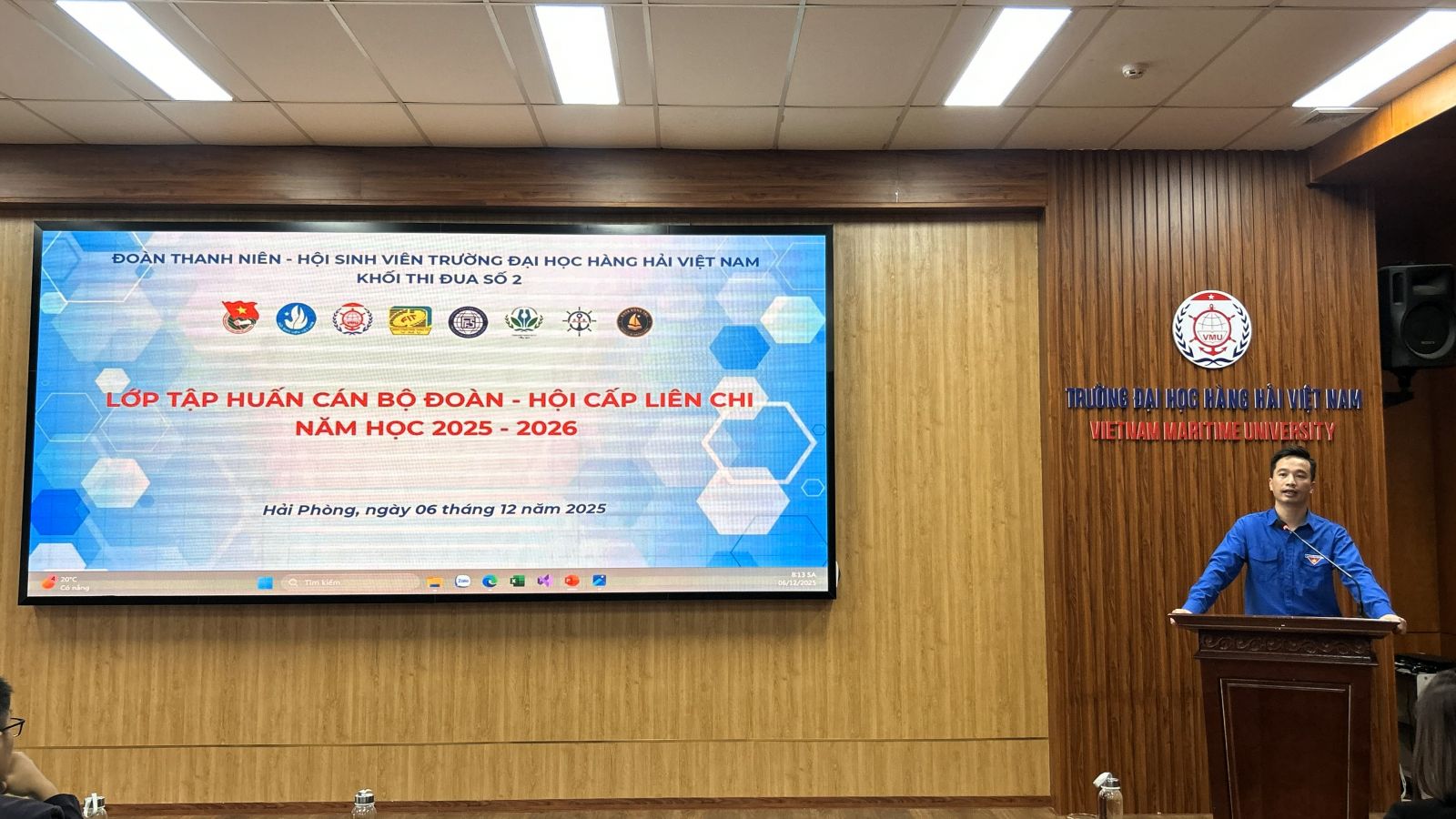Sáng thứ bảy (06/12/2025), Khối thi đua số 2 đã tổ chức thành công Lớp tập huấn Cán bộ Đoàn - Hội cấp Liên chi, với sự tham gia của hơn 120 đồng chí cán bộ Đoàn - Hội đến từ các đơn vị: Khoa Công nghệ thông tin, Khoa Ngoại ngữ, Viện Môi trường, Khoa Đóng tàu và Viện Đào tạo Chất lượng cao.